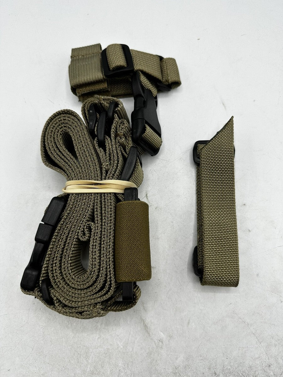 Rapid action, ambidextrous 3-point tactical sling. Similar to our Quick Release Tactical Sling (below) with an added Quick Release Buckle that enables the operator to safely disconnect the weapon (sling attached) from the operator's body, a critical safety mechanism. Weapons Capability: M4 and the M203A1. Rapid action, ambidextrous, 3-point tactical sling. Constructed of 1.25Wide, thick heavy duty nylon. The QRT-QRB allows for Hands free in. action, keeping the weapon close and always at the muzzle-down ready position, with the versatility to go prone, to conduct doorway searches both strong and weak side, as well as get a true 'rifleman's' hold on the gun. The thumb activated dynamic release mechanism allows the sling to expand providing the added length for complete mobility. The QRT can be used with the wraparound hand guard attachments or it can interface directly with weapon mounted swivels. Colors: Black, Coyote Brown or Olive Drab.
